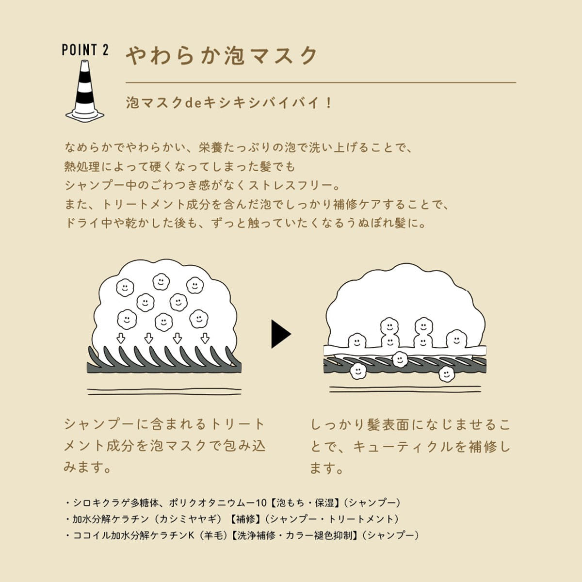 ■ブースター効果とやわらか泡マスクで洗いながら髪をケア